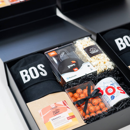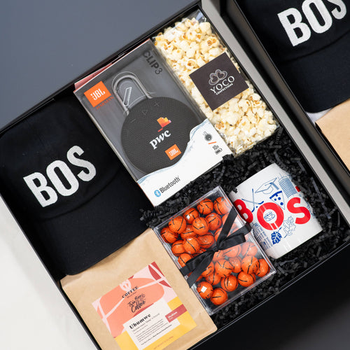 We sourced pregame essentials and small-batch treats that packed flavor and function, including a sneaker-cleaner kit, local popcorn, a branded portable speaker, small-batch coffee grinds paired with a Boston-themed coffee mug, and a ‘BOS’ hat as a post-game keepsake. And the best part? Mini basketball chocolates for the win!