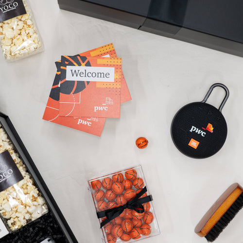 Our client requested custom gifts that were set out to surprise and delight their VIP guests attending the Sweet 16 and Elite 8 March Madness games at the Ritz-Carlton in Boston. To create a warm and memorable welcome, they requested locally sourced treats and branded swag that captured the spirit of the event and the city.