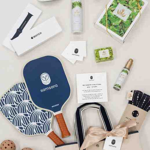 Our repeat client, Samsara, requested three distinct on-brand gift concepts to welcome and thank employees on their reward trip to Hawaii! Each concept was tailored to the trip location and activities, and this one in particular needed to be “pickleball’ themed for the guests to enjoy, while also highlighting the tropical locale.